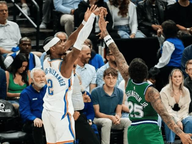而和公牛,马刺相比,雷霆才是真正意义上的顶级强队。一是因为他们已经具备了强队底蕴,连续两个赛季常规赛西部第一,上赛季总冠军,本赛季接着要蝉联西部第一,统治力初见雏形。二是他们拥有MVP级别的超级巨星,亚历山大现在正处于巅峰期,即将迎来职业生涯的高光时刻。他已经连续3年场均得分30+,且投篮命中率超过50%,NBA历史上的后卫中,唯独仅有他和篮球之神迈克尔乔丹做到过。超级巨星的意义就是,他能带队在季后赛突破上限,他不会惧怕季后赛这种高强度的比赛,纵使对手掏出几个人来防你,自己也能找到机会进攻。